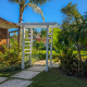 This beautiful property on the Sea of Abaco was given new life after Hurricane Dorian caused major damage to the original house and gardens. The new owners expanded and renovated the home, with a fresh new look for the pool and surrounding landscape. We worked to save the mature palms and trees that weathered the storm, blending them into a colourful, coastal garden complete with a pool, hot tub, propane fire pit, and a big lawn for the kids and family dog. Privacy was created with a boundary wall and thick plantings of buttonwoods, seagrapes, and clusia. At the front, a tropical flowering garden and a new center island in the driveway help soften the arrival and shield direct views of the front door. Arbors were added over the pedestrian path and driveway, where bougainvillea vines will grow and fill in over time, adding even more colour and character.