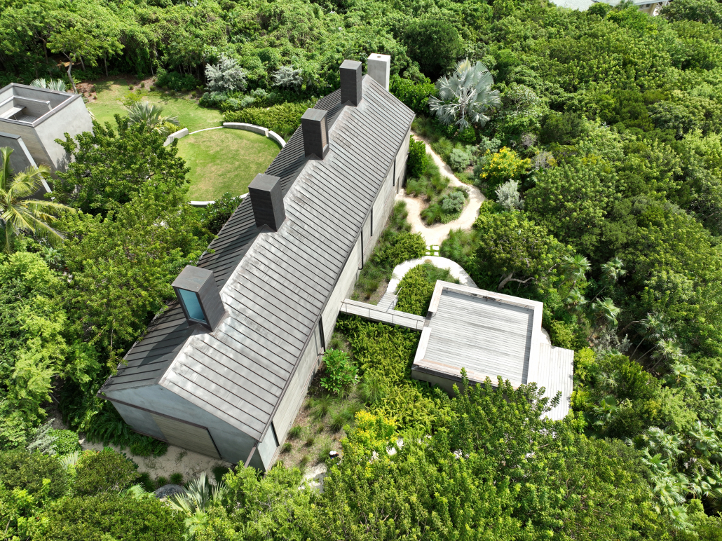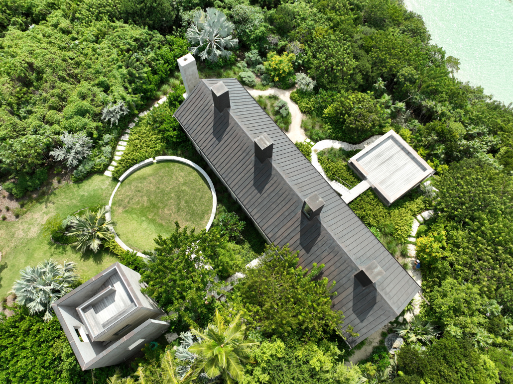 This project was conceived with a deep respect for the existing landscape, prioritizing a seamless merge with the surrounding coppice. Lawns were minimized to just the driveway area, allowing native plantings to dominate. In collaboration with Texas-based architectural firm Max Levy, the house was designed to appear as though it naturally emerges from lush masses of ferns and grasses. A palette of silver and yellow accents is thoughtfully repeated throughout the property, creating visual cohesion. Custom limestone water features punctuate the landscape, adding a sense of serenity and craftsmanship to the overall design.