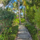 This project is all about blending into the natural surroundings. Lush footpaths wind through native plantings, leading to a coral stone driveway with soft beach creeper hedges lining the way. Three Gumelemi trees sit proudly in the center island, surrounded by salt cord grass, Sabal palms, and clusters of cocoplum and buttonwood that give the space a laid-back, local feel. Tucked in front of the guest house, there’s a quiet garden with seating for peaceful mornings or evening chats. And just steps away, a wood-burning fire pit sits by the sandy beach—perfect for winding down with friends under the stars.